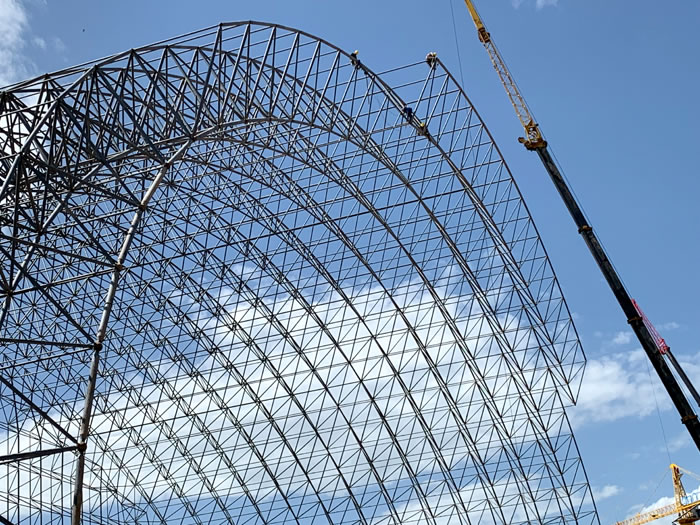 (2)网架加工前应对现场尺寸进行复测,确认无误后方可进行加工、安装;网架制作、运输、安装应遵守《空间网格结构技术规程》JGJ7-2010、《钢网架宁安螺栓球节点》JG/T 10-2009、《钢网架宁安螺栓球节点用高强度螺栓》 GB/T 16939-2016、《宁安钢结构宁安工程宁安施工规范》 GB50755-2012、《宁安钢结构宁安工程施工质量验收标准》 GB50205-2020。